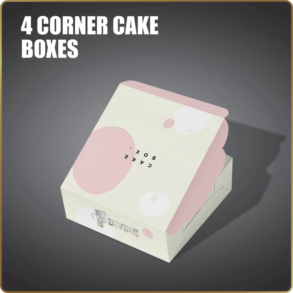 Bulk buying automatically means better prices and uninterrupted supply. Our bulk cardboard 4 corner cake boxes ensure that bakeries, catering businesses, and dessert brands always have competitively priced packaging. Whether you're delivering large orders for special occasions or providing multiple retail outlets, our wholesale custom cardboard 4 corner cake boxes help you stay true to your packaging across all your products.